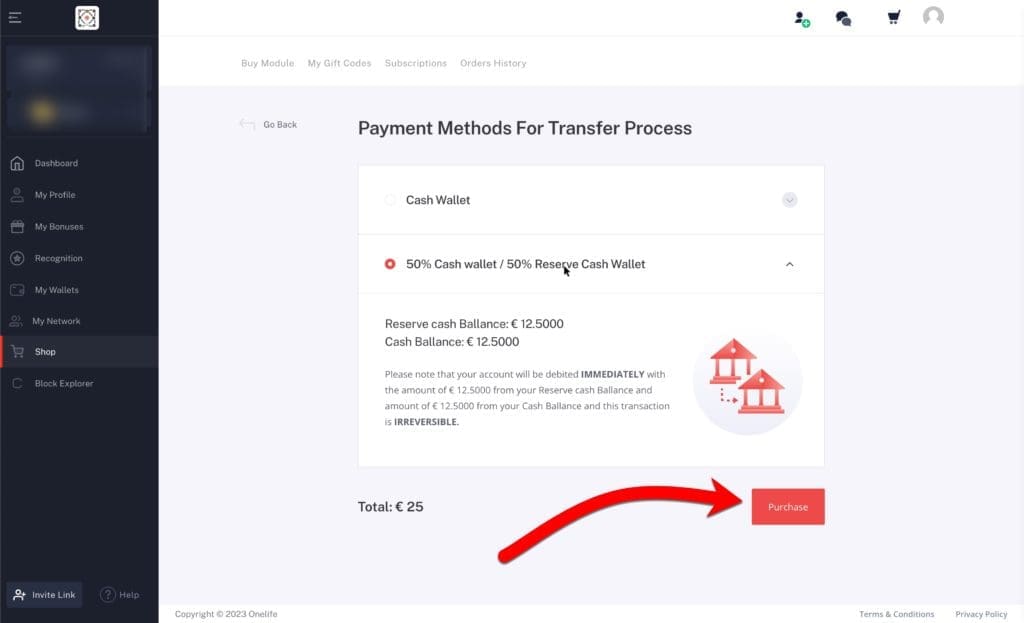 بمجرد تحديد طريقة الدفع الخاصة بك ، انقر فوق الزر الأحمر "شراء".
