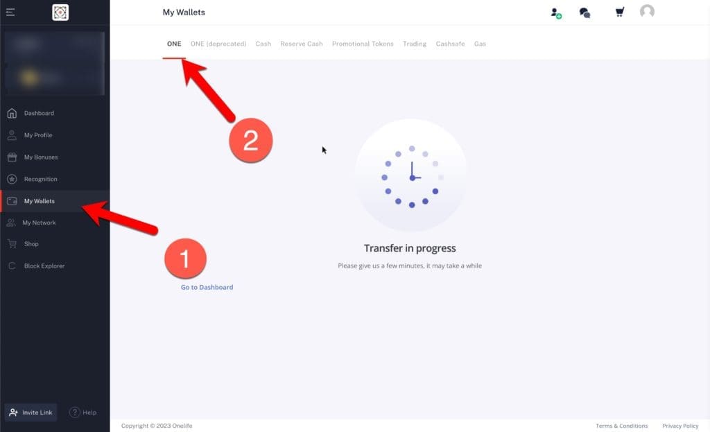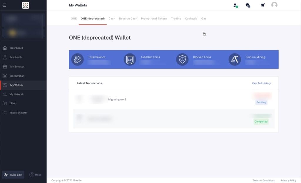 9. يمكنك أن ترى أن المحفظة الجديدة (ONE (مهملة)) مدرجة في قائمة المحفظة. يمكنك أن ترى أن هذه محفظة blockchain خاصة ، وتلك التي تظهر واحدة فقط هي محفظة blockchain العامة الجديدة.